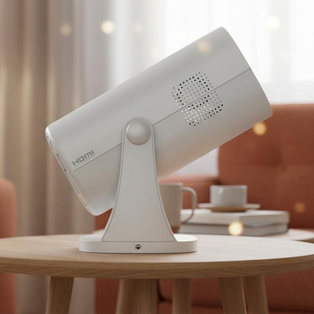 Elevate your ambiance with the built-in LED strip, which effortlessly transforms the device into a stylish, warm white bedside lamp. A 180° degree rotation and a touch of brightness transform your space, delivering soothing illumination even when the projector takes a rest. Your personal cinema and an elegant lamp — all in one.